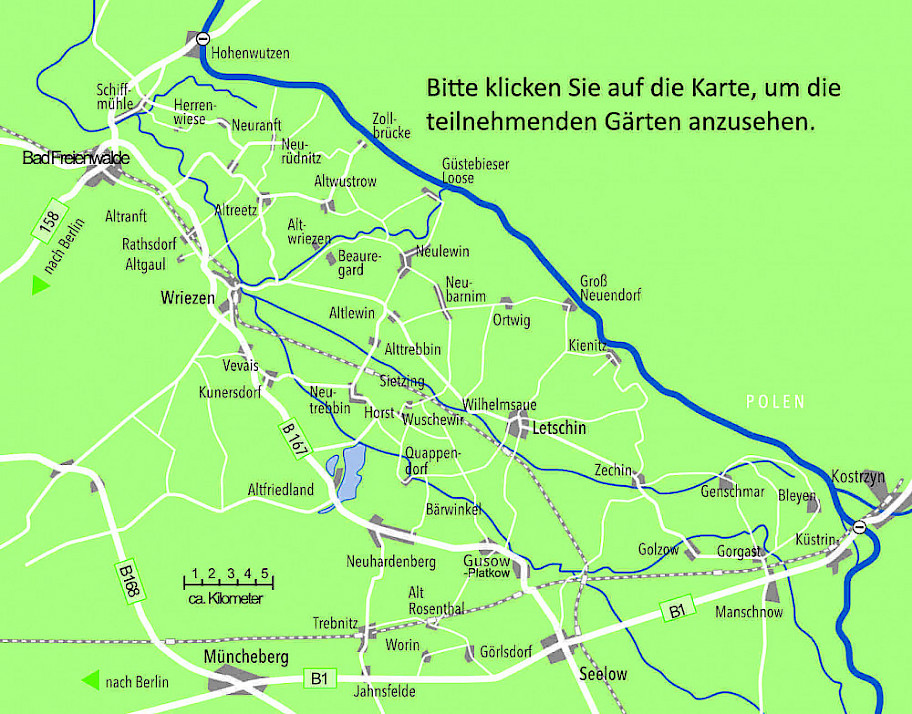 Am Rande des Oderbruchs, in Platkow diekt an der B167, erstreckt sich hinter einem 1865 erbauten Haus ein großer Erholungsgarten.