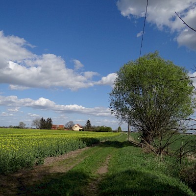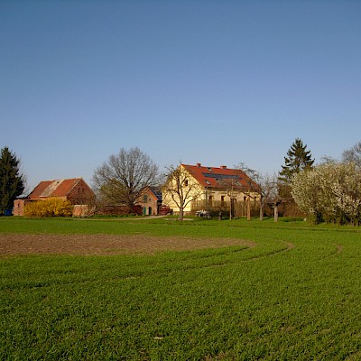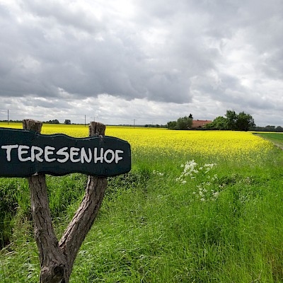 von der Straße Gusow - Letschin rechts beim weißen Schild „Teresenhof“ 2,5 km auf Feldweg abbiegen. Umleitung beachten!