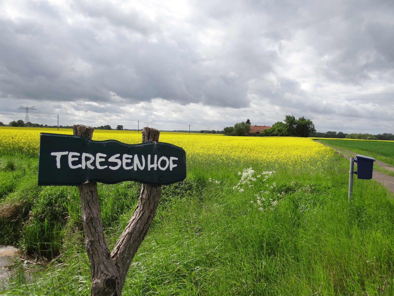 von der Straße Gusow - Letschin rechts beim weißen Schild „Teresenhof“ 2,5 km auf Feldweg abbiegen. Umleitung beachten!